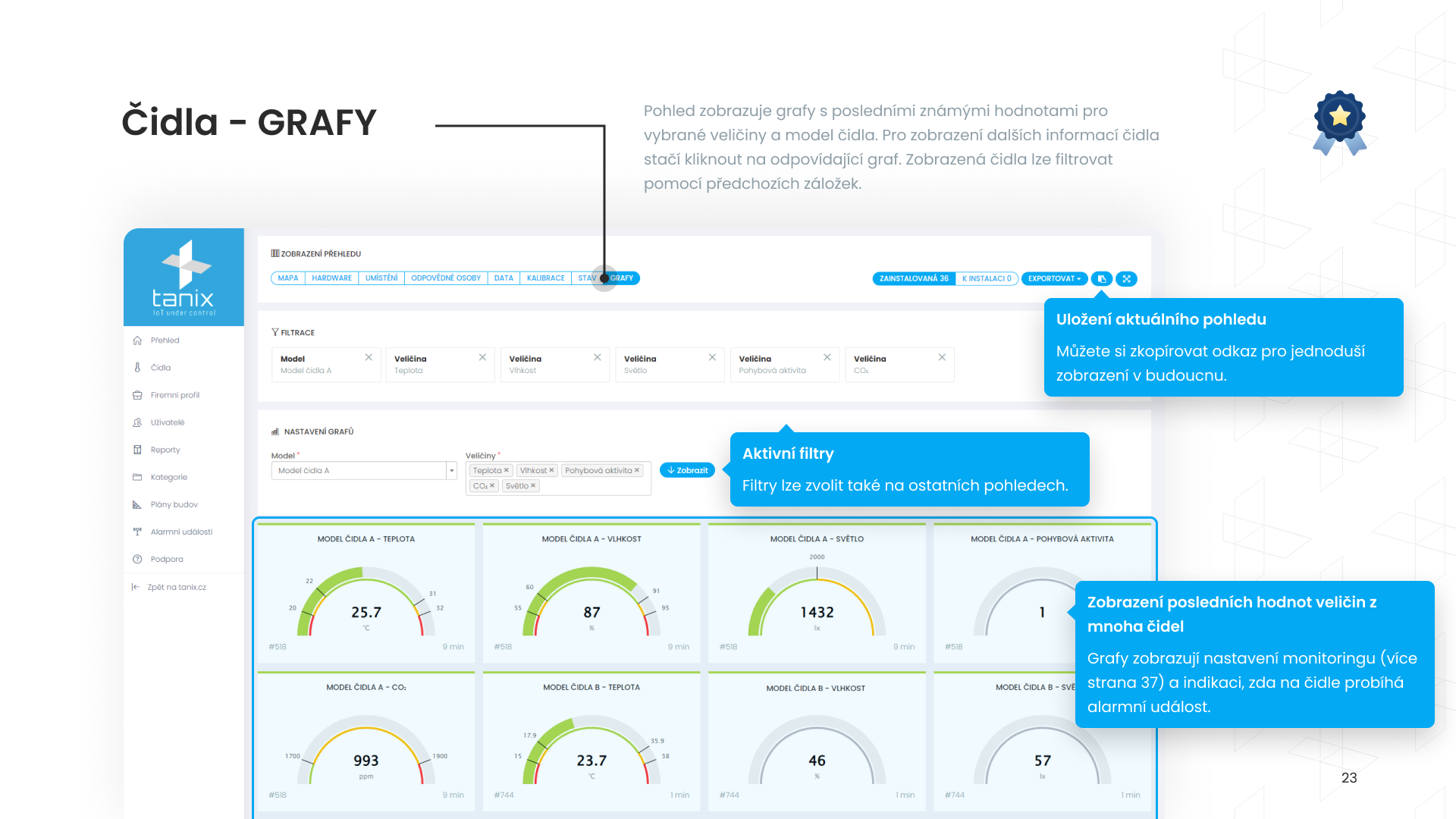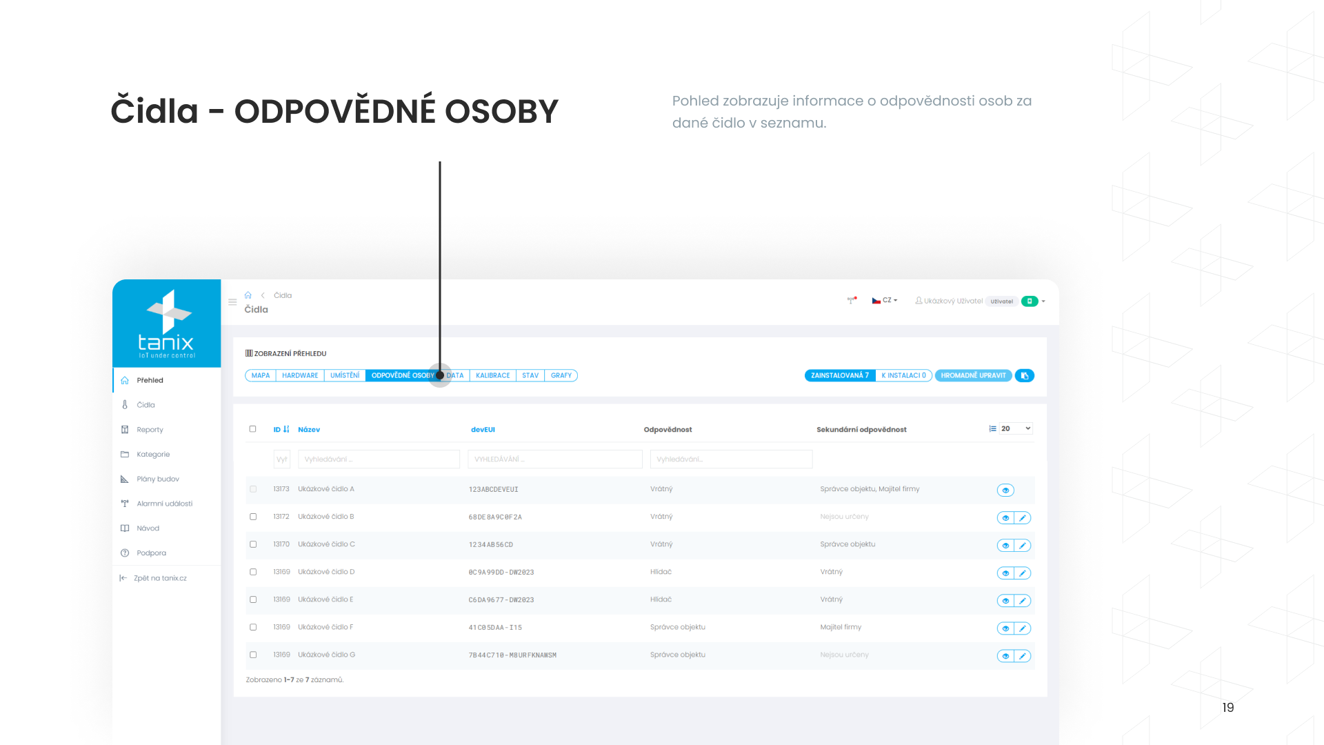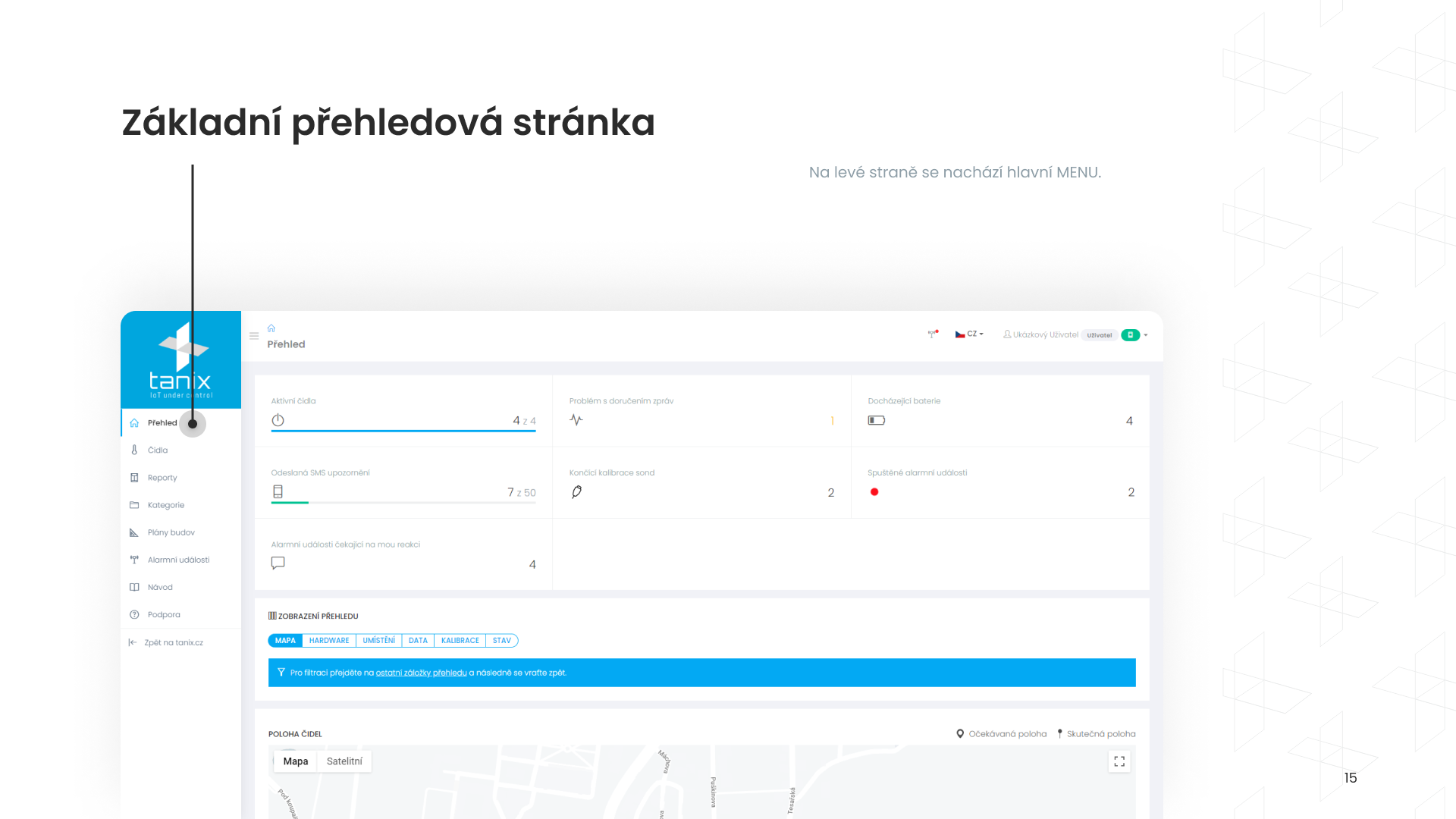 Zobrazení čidel (kapitola 3)